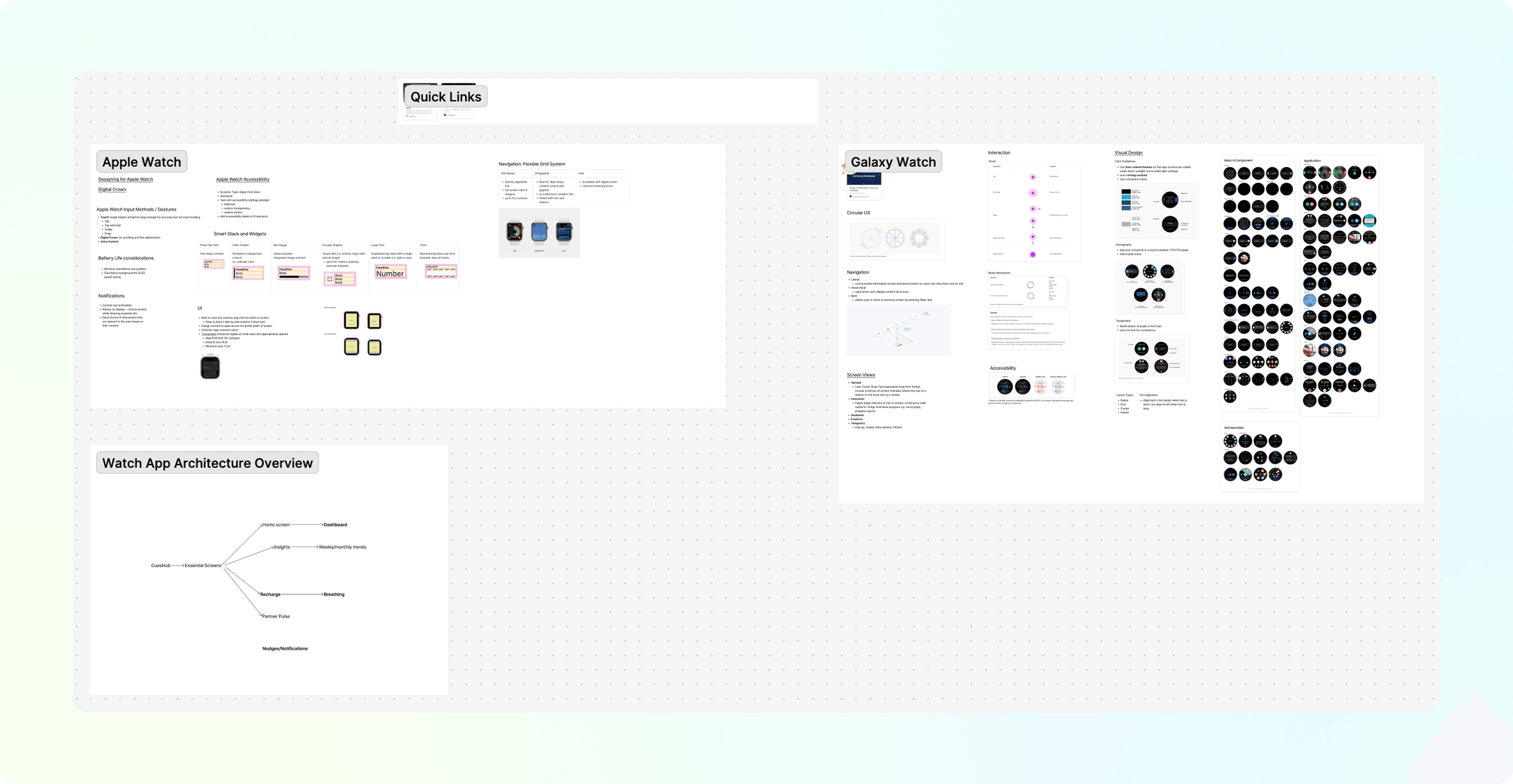 This was my first time designing for a smartwatch, so I had to start from the ground up. I researched Apple Watch interface patterns, accessibility standards, and motion guidelines to understand how to simplify information for such a small screen.