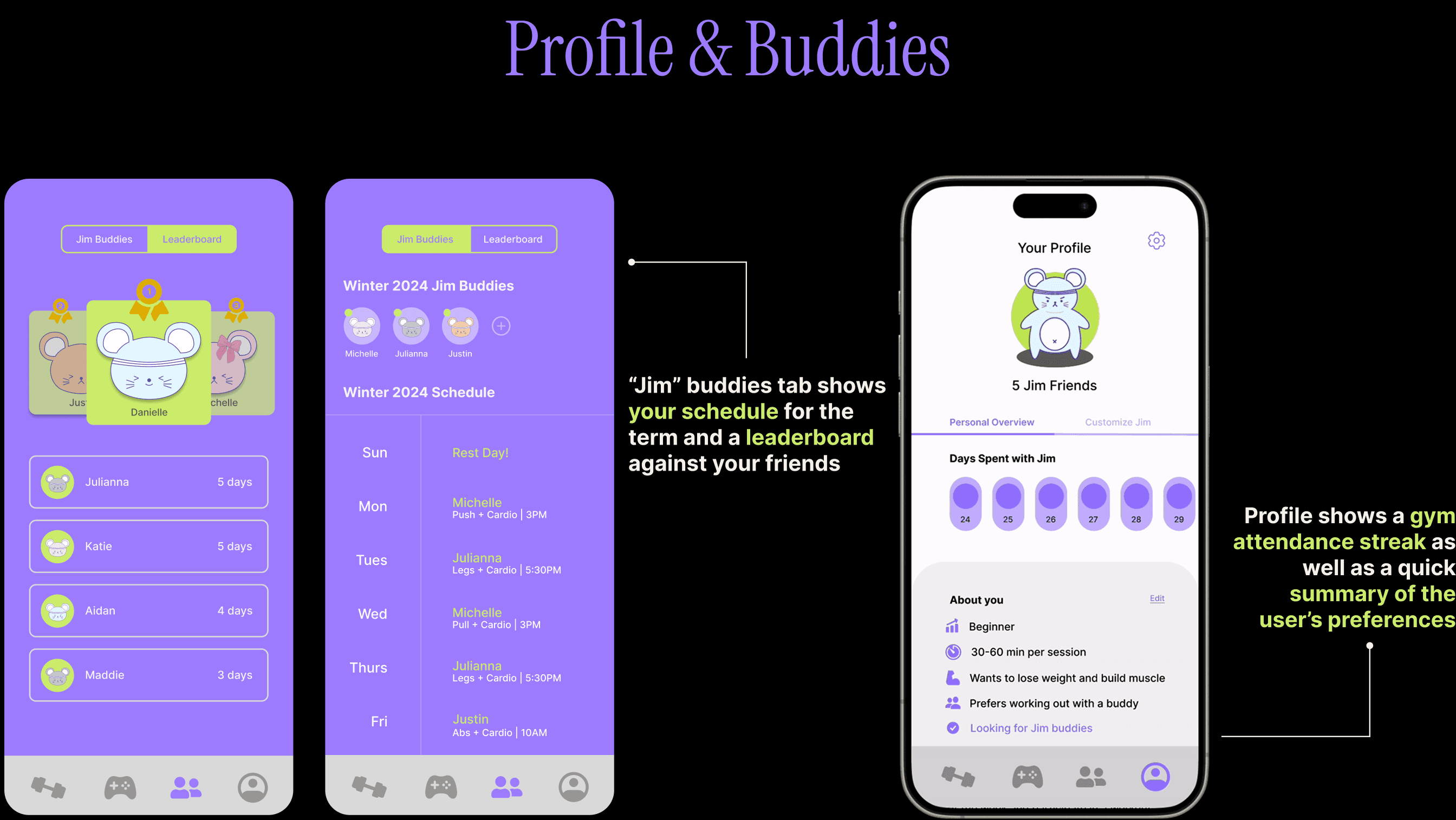 Let’s Go Jim! encourages consistency by turning gym attendance into a social experience. The app uses features like check-ins, friend visibility, and streaks to create accountability and motivation, helping users build sustainable fitness habits through community support rather than pressure.